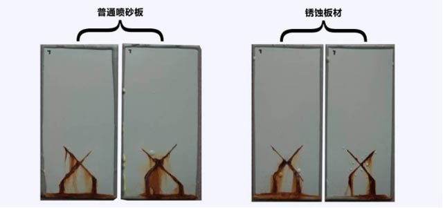環氧帶銹防銹涂料耐鹽霧測試:1032小時,對銹蝕板材的防腐保護能力與經過噴砂處理的防腐程度相同。